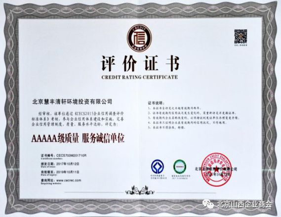 3、品牌优势:在2016年全国“环卫企业签约能力100强”排行榜上,位列第29位。在2017年10月份全国环卫企业签约能力50强排行榜上,位列第13位。在2018年3月环卫市场化签约能力十强榜单中,位列第6位。在2018年一季度环卫行业20强榜单中,位列第9位。是北方地区环卫领域里的佼佼者,华北地区民营环卫企业的领头羊。环境司南环卫数据监测表明,在河北省2017年度环卫服务营收五强企业中,“慧丰清轩”位列第五位,居民营企业翘楚。