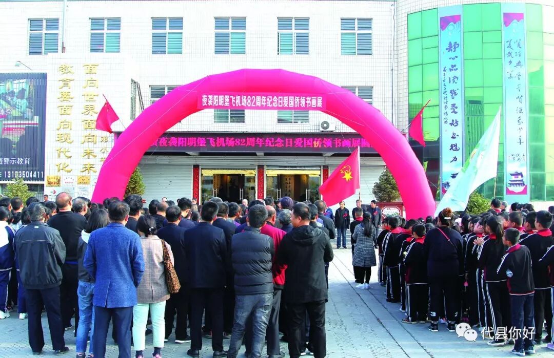 开展仪式现场,爱国侨领代表陆惟华作了感人肺腑的致辞;工作人员宣读了来自中国华侨传媒网、比利时世界文化艺术交流中心等20多家海内外单位和个人预祝书画展圆满成功的贺信贺电;高存峰在致辞中希望大家通过参观书画展,知史爱党、知史爱国,进一步传承“夜袭”精神、凝聚精神力量;阳明堡镇党委、政府向协办单位负责人刘福堂和爱国侨领陆惟华、侯杏妹颁发了“庆祝新中国成立70周年暨夜袭阳明堡飞机场82周年纪念日爱国侨领书画展”贡献奖荣誉证书;陆惟华、侯杏妹分别向阳明堡镇党委政府和学校赠送墨宝。