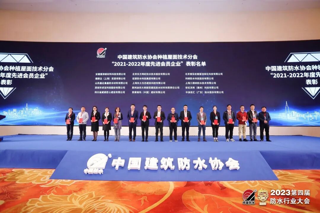 4月24日,2023年种植屋面技术分会年会暨第十四届种植屋面技术研讨会上通报了中国建筑防水协会种植屋面技术分会2022年工作报告,并为表彰先进,鼓励企业不断提高核心竞争力,以及推动种植屋面事业持续健康发展做出更大贡献,进行对表现优异的企业进行表彰。