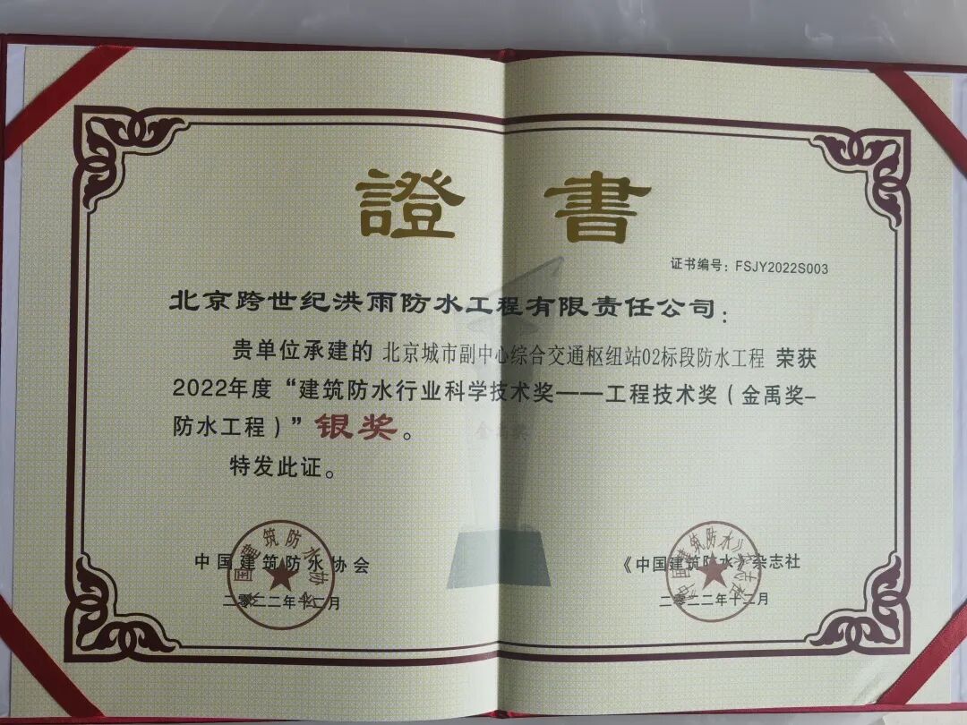 据了解,“金禹奖”是为提升防水工程施工技术和工程质量,提高防水工程管理水平,鼓励企业重视防水工程技术创新,中国建筑防水协会从2014年起在全行业开展的“建筑防水工程”评选活动,也是建筑防水工程行业最高奖项,世纪洪雨此次是自评选开展以来连续第九次获此殊荣。
