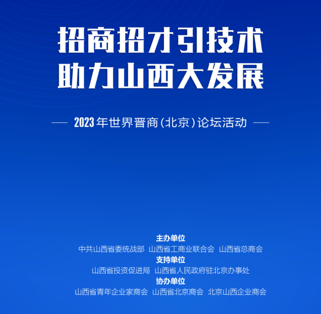 8月20日上午,由中共山西省委统战部、山西省工商业联合会、山西省总商会主办、 协办“招商招才引技术,助力山西大发展”2023年世界晋商(北京)论坛在京成功召开。商会作为协办单位组织39位会员企业参加。